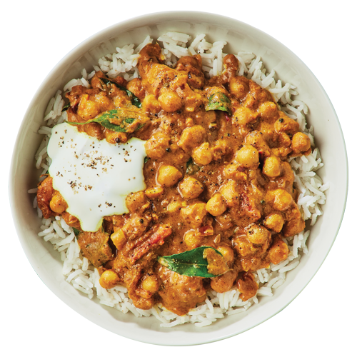 Fragrant South Indian–style chickpea curry, served with basmati rice and coconut lime sauce.