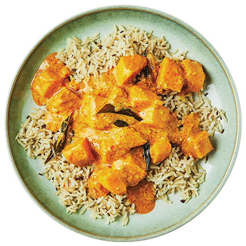 A mild southern Indian pumpkin curry with fragrant coconut rice.